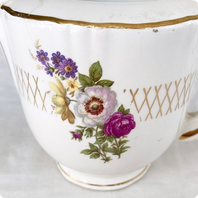 華やかな花柄と金彩が、とてもエレガントで、フォルムもとても素敵ですね。