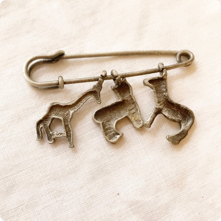 レトロな風合いが絶妙に加わったこのピンブローチは、ストールを留める際にも非常に便利です。