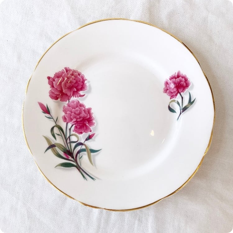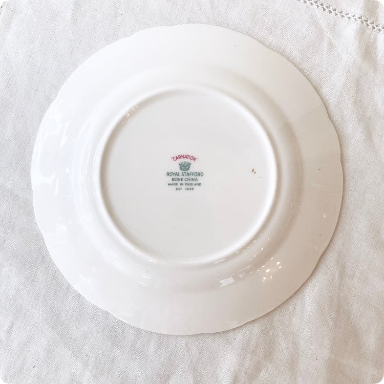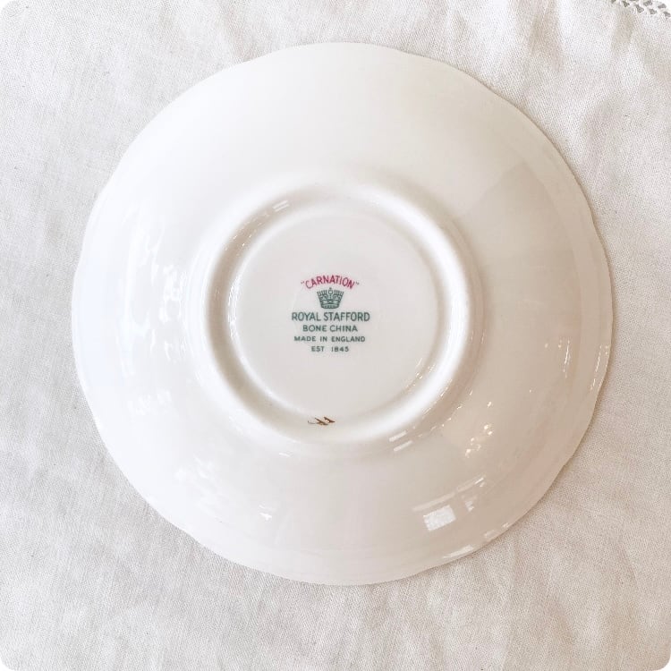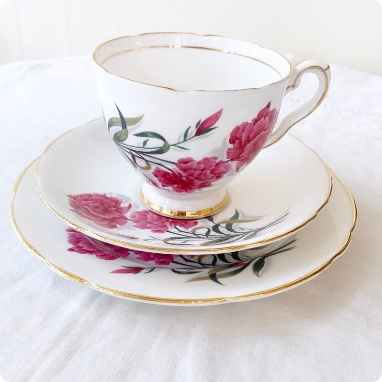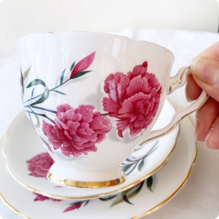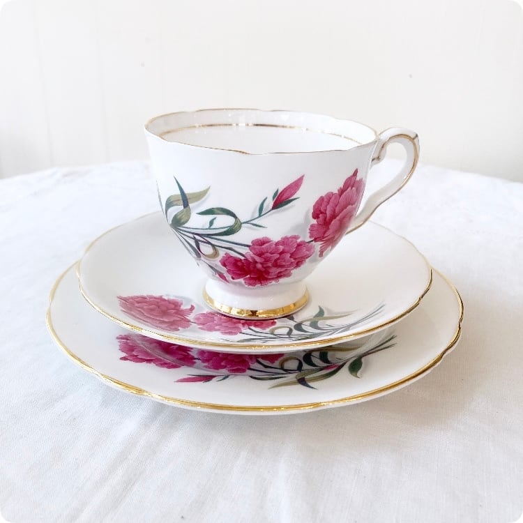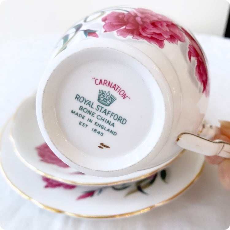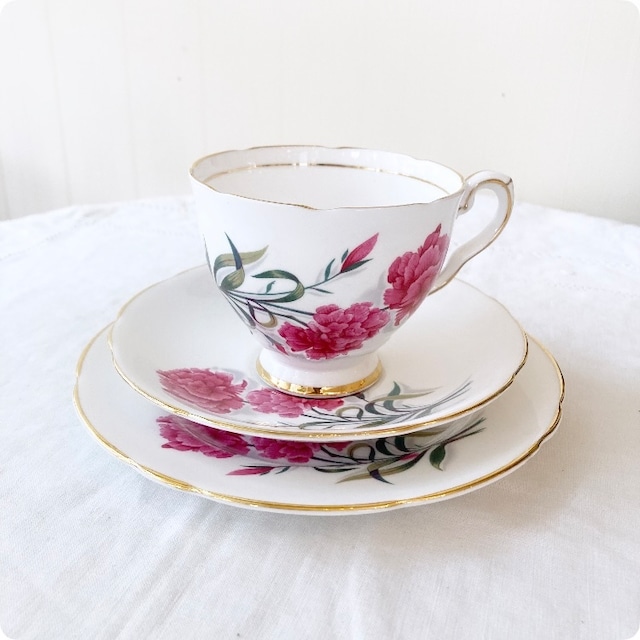 イギリスヴィンテージ カップ&ソーサー トリオ | カーネーション柄 ロイヤルスタッフォード社 ボーンチャイナ| 1930年頃