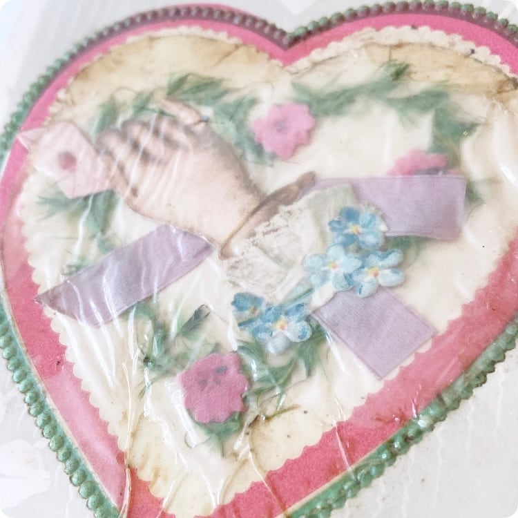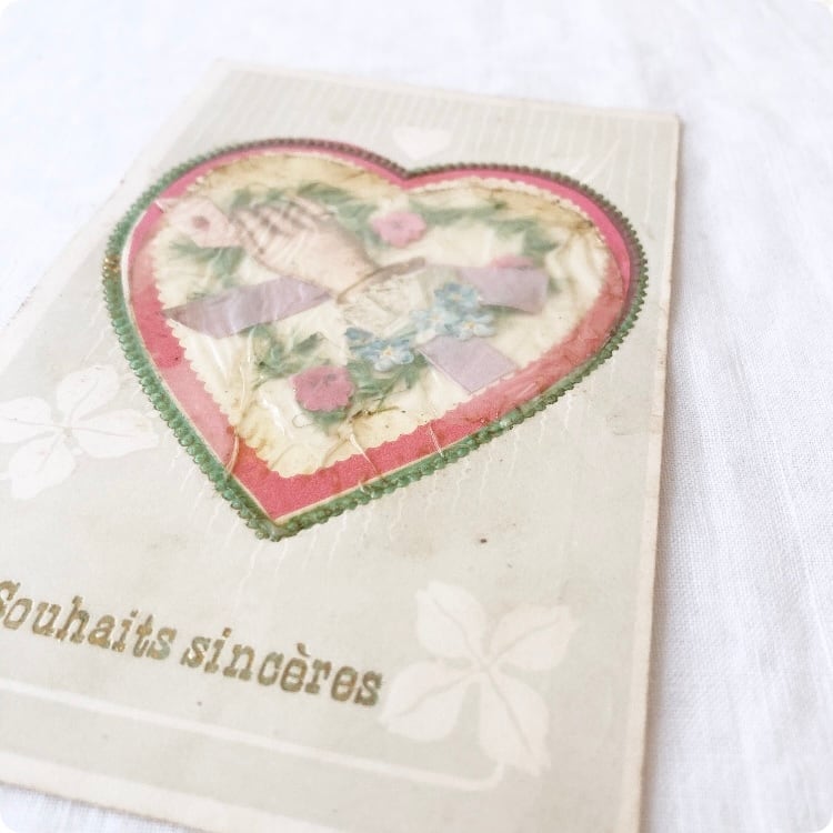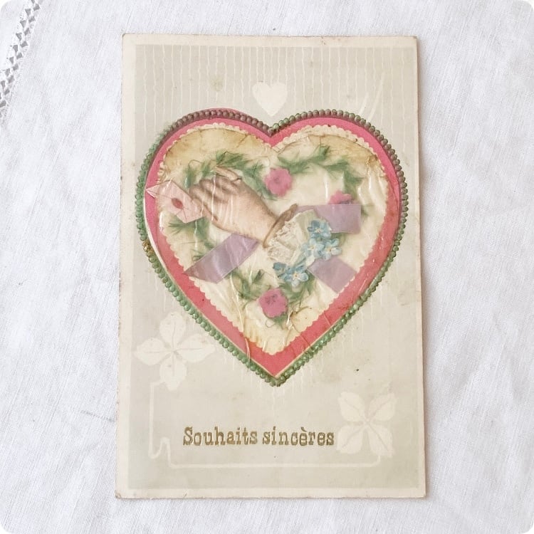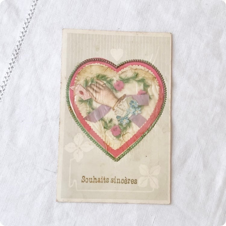 美しいハート型のデザインが魅力的な、フランスアンティークのポストカードです。