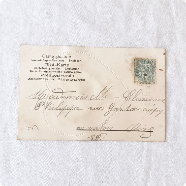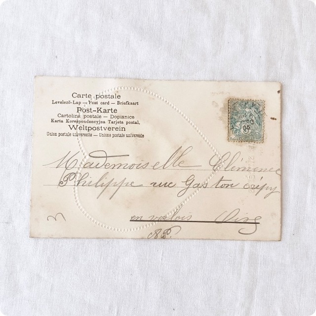 エンボス加工が施されたこのポストカードは、優雅さと温かみを感じますね。