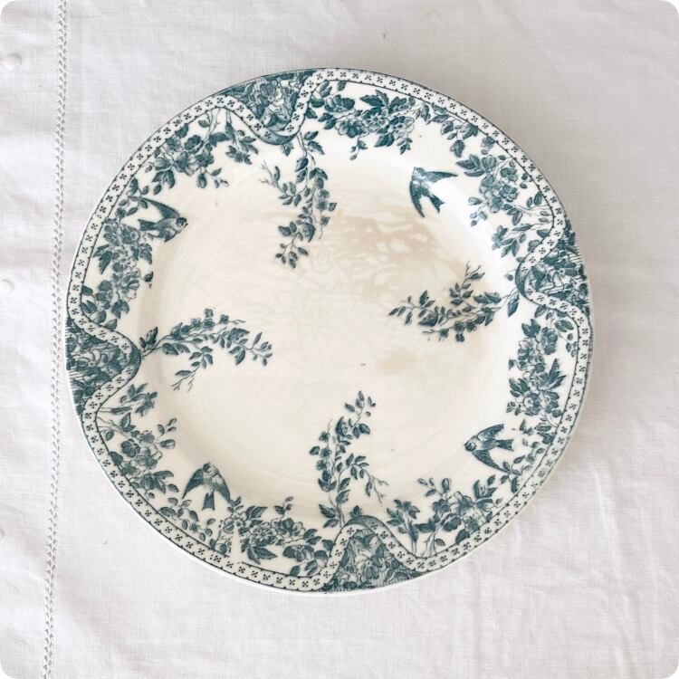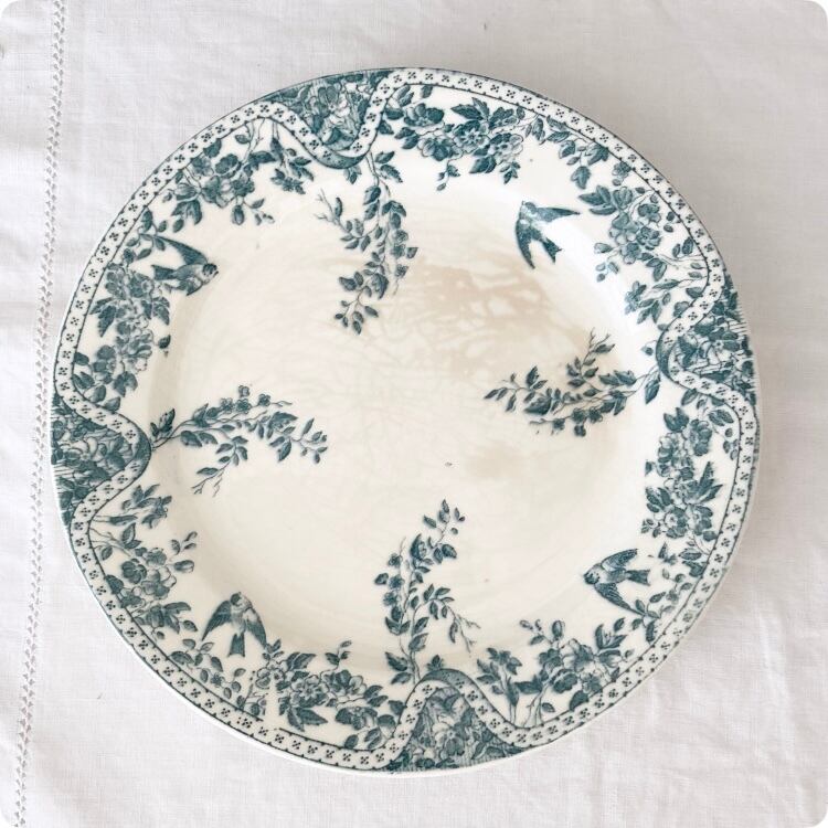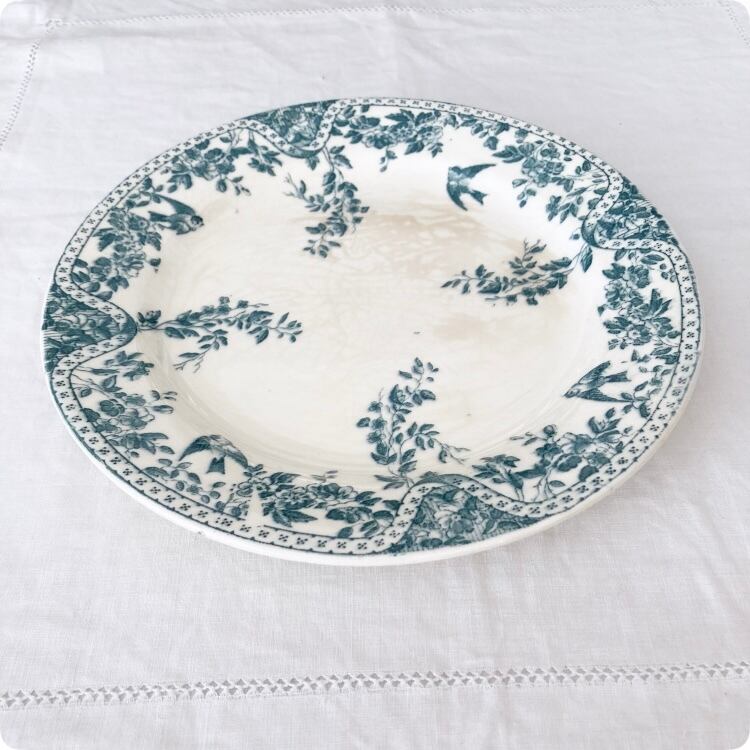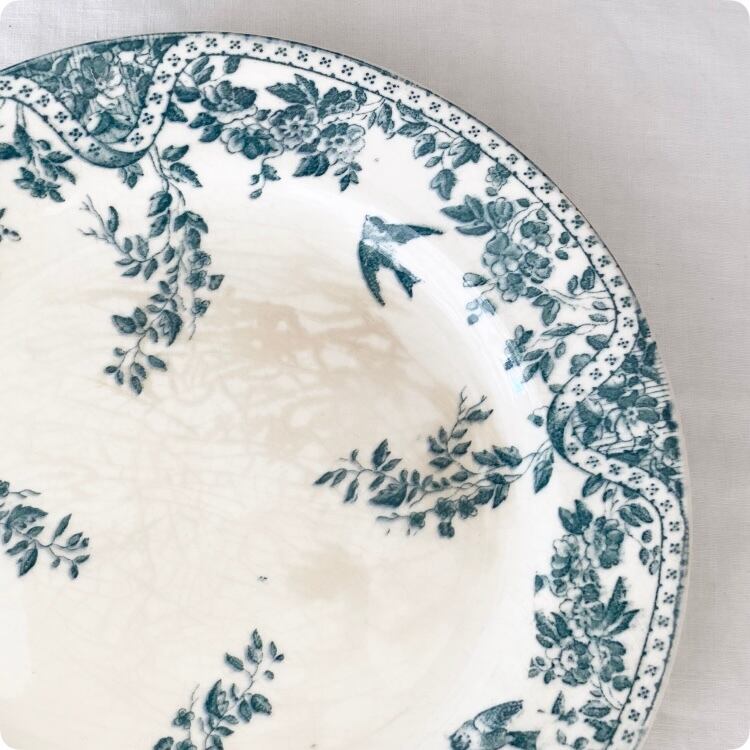 フランスアンティーク 皿 | ボルドー窯 愛らしい鳥と野バラ |19世紀半ば~20世紀初頭