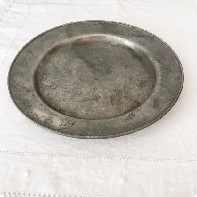 フランスアンティーク 皿 | ピューター皿 アンティークトレイ 落ち着いた風合い |18世紀~19世紀