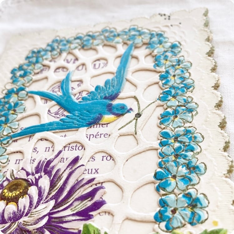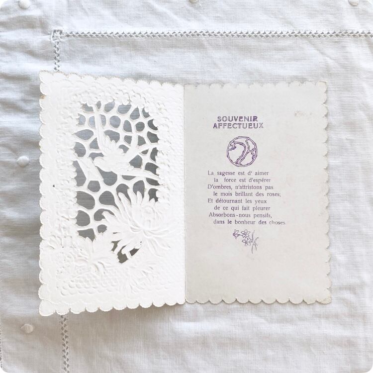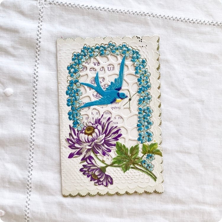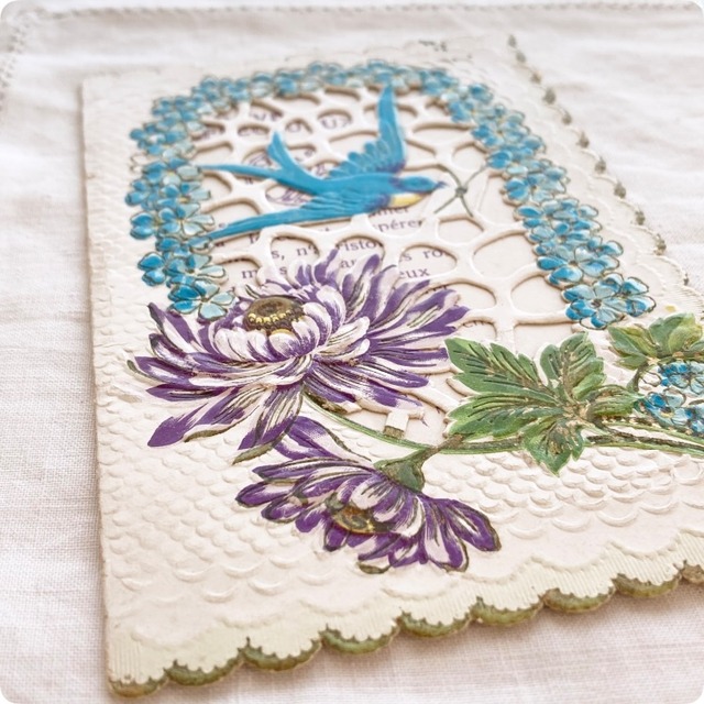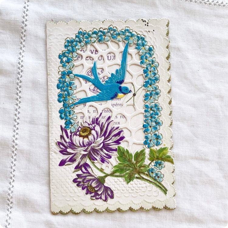 フランスアンティーク ポストカード | ヴィクトリアン調 ツバメと花 カニヴァ(小聖画)エンボス加工 透かし細工 |19世紀~20世紀初頭(I002)