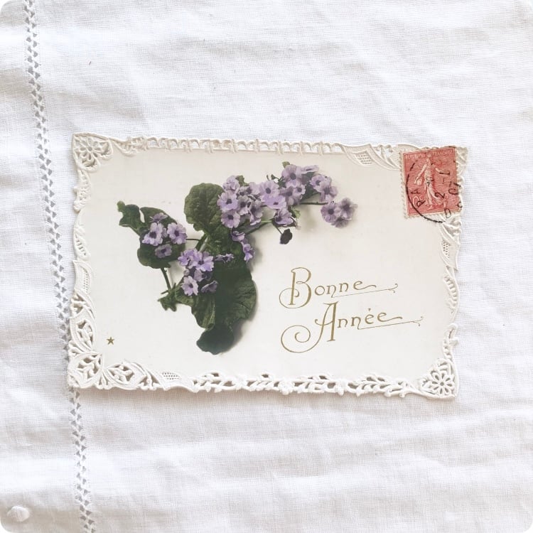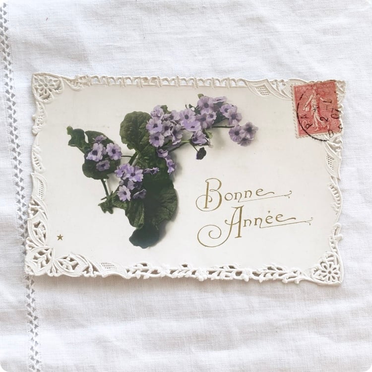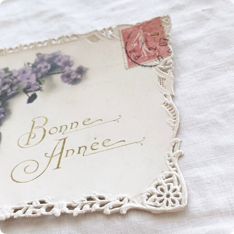ポストカードを添えると、アンティーク感と季節の物語性がプラスされます。