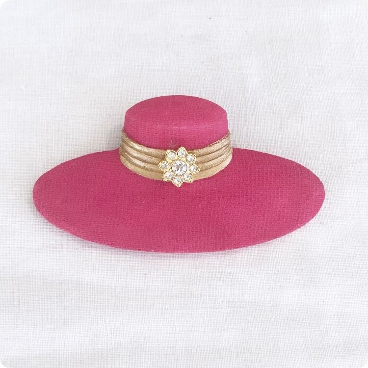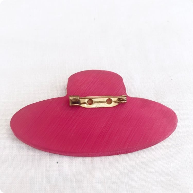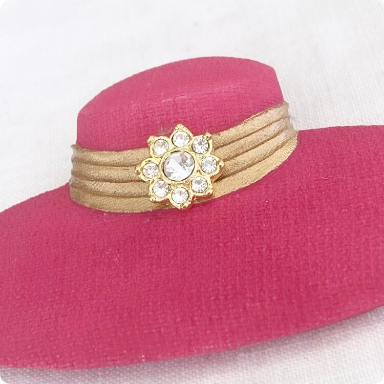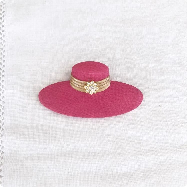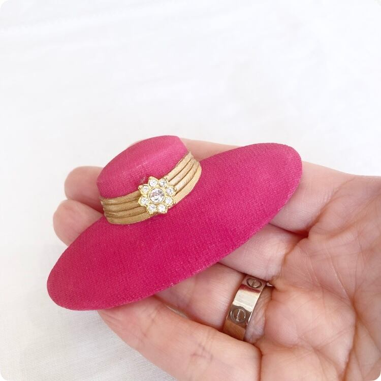フランスヴィンテージ ブローチ |鮮やかなピンク色 ミニチュア帽子モチーフ ラインストーン |1980~90年代