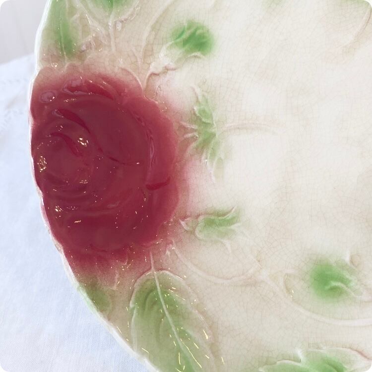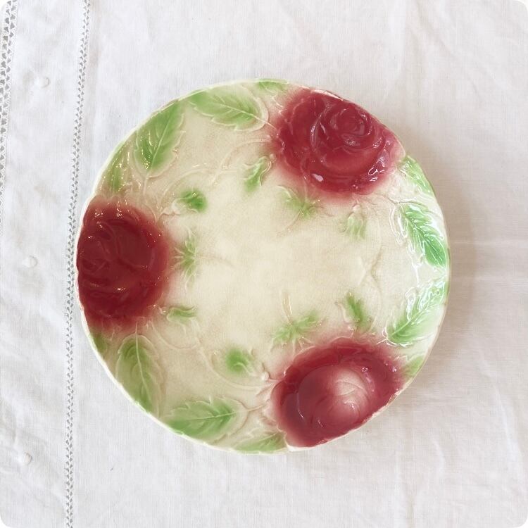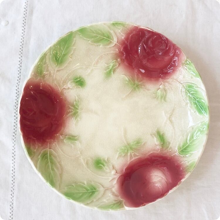 フランスアンティーク 皿 | バルボティーヌ 大輪の薔薇と葉 サラン窯 |1900年代初頭~1930年代頃