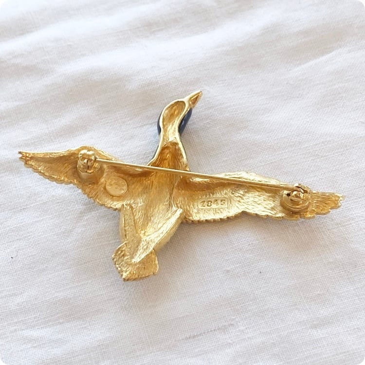 ぜひ、この魅力的な鴨モチーフのブローチを手に取り、そのエレガントな雰囲気をお楽しみくださいね。