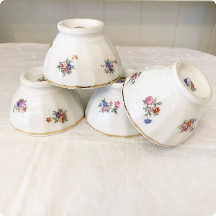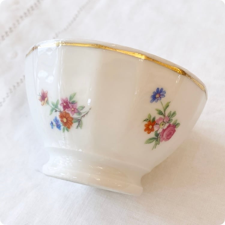 フランスヴィンテージ シュガーボウル|P.L. France (La Porcelain Limousine製) 素朴で可憐な花柄 ミニボウル | 19世紀末~20世紀初頭