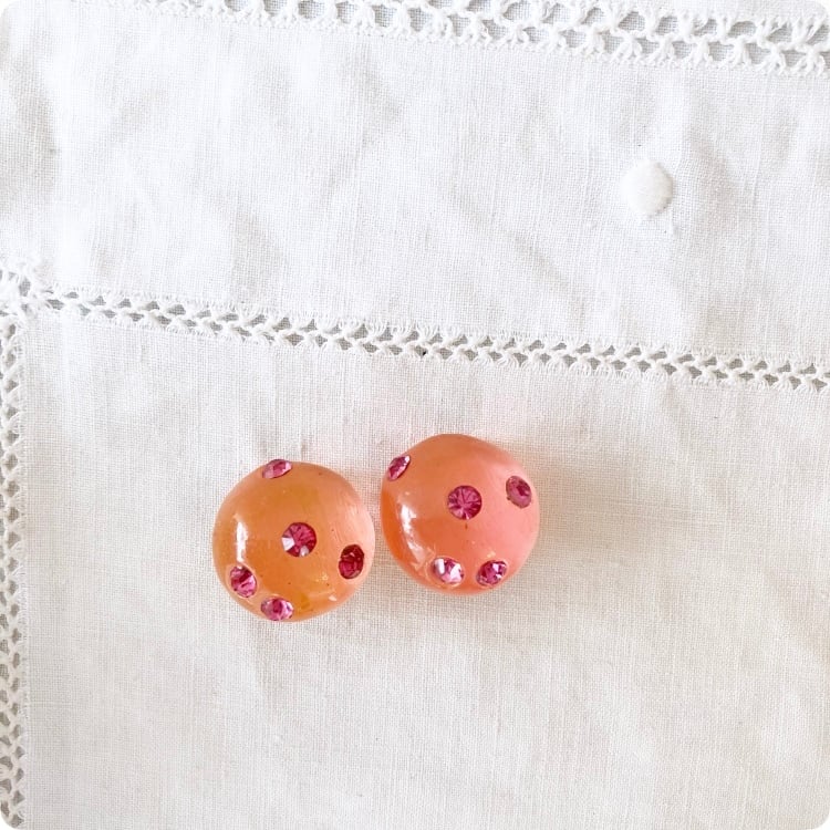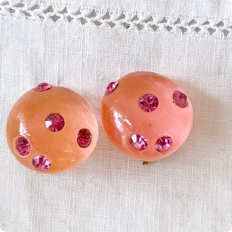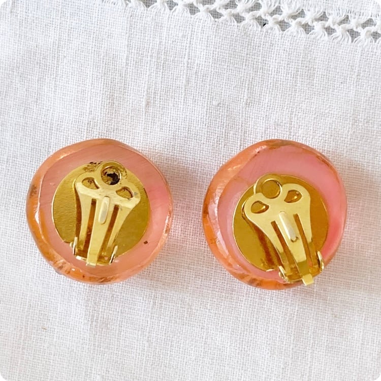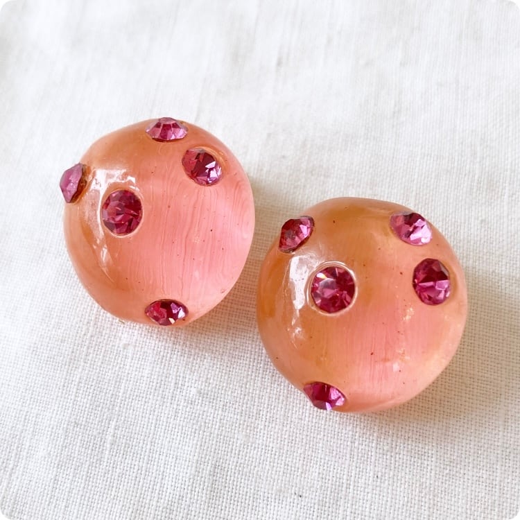 フランスヴィンテージ イヤリング |愛らしいピンクカラー ルーサイト素材 クリップイヤリング |1930⁻40年代