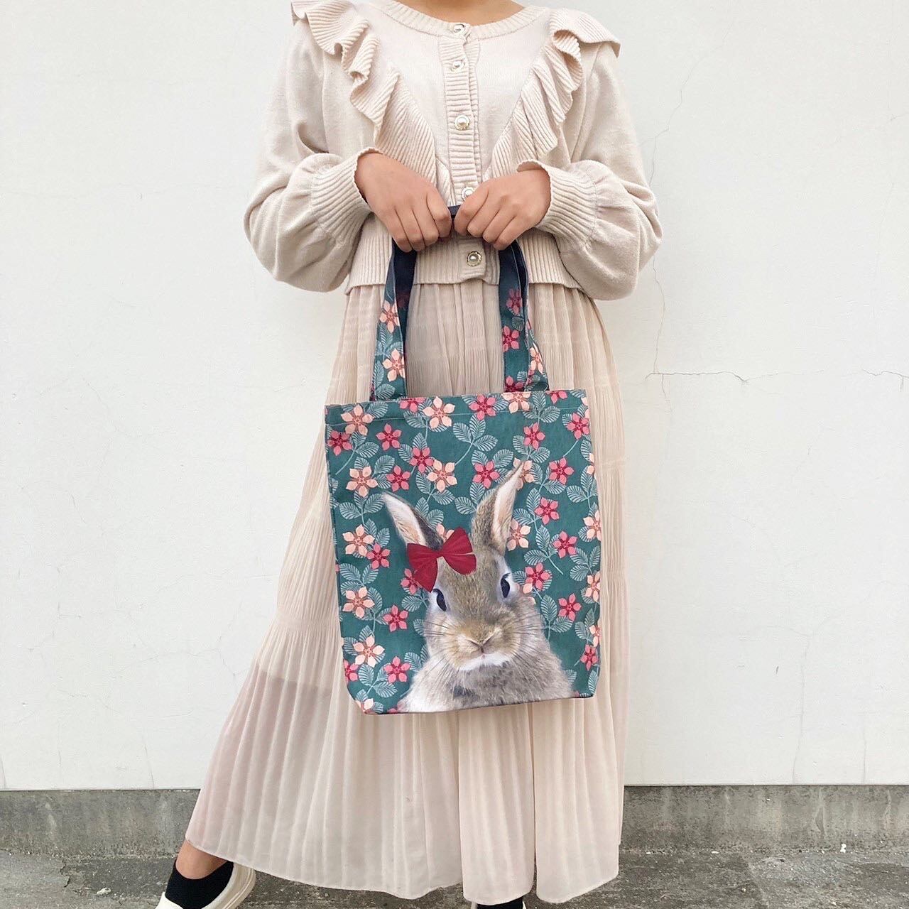 レトロカラーなウサギが可愛らしい フランス雑貨 縦長トートバッグ