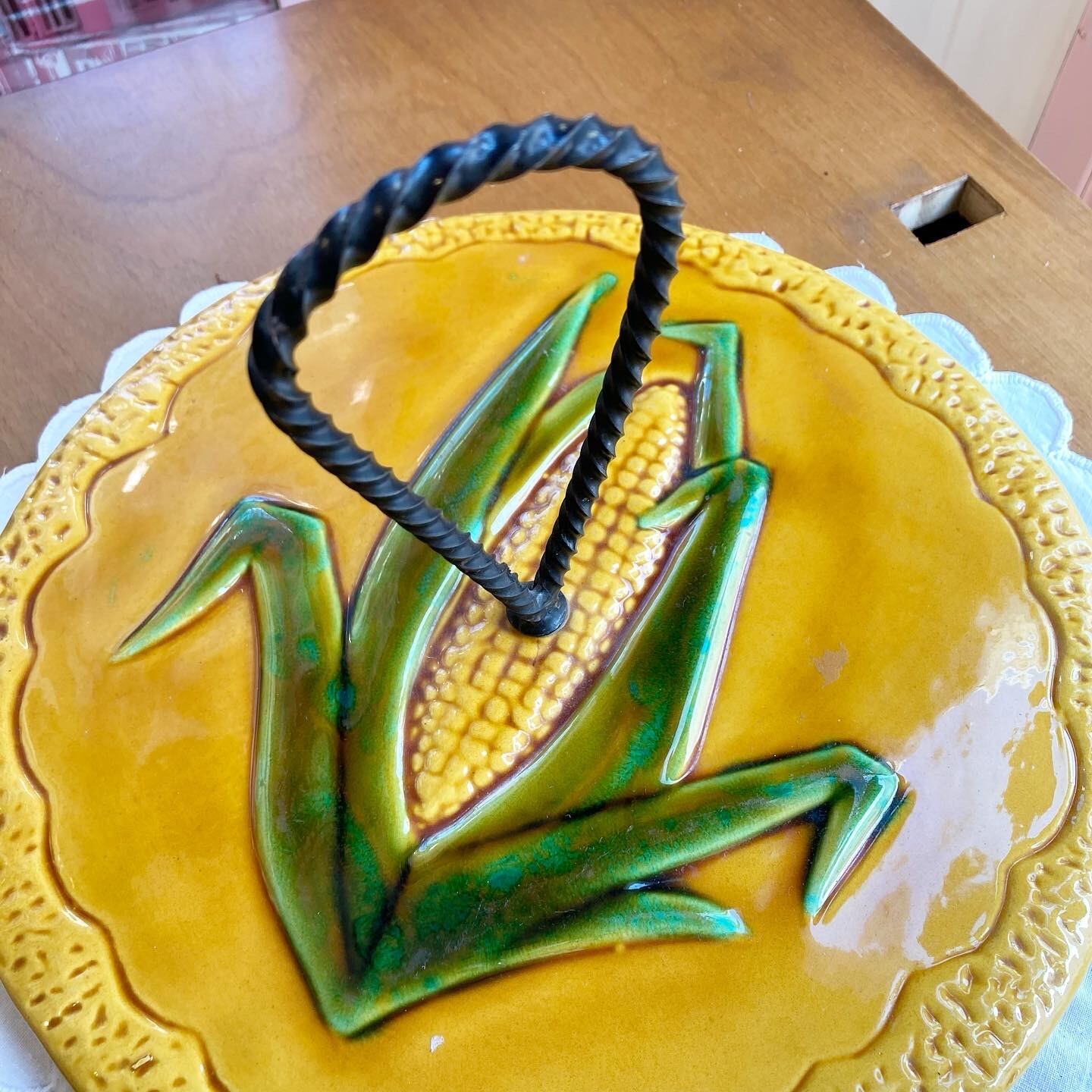 トウモロコシの絵柄が施されており、存在感のあるデザインが特徴です。