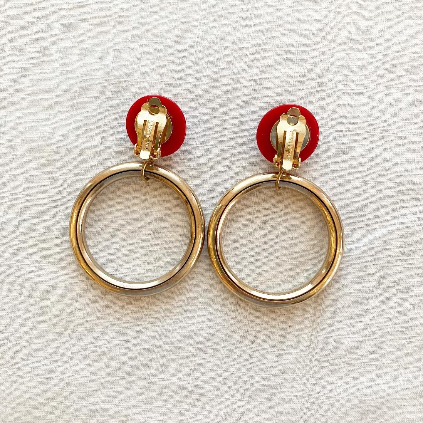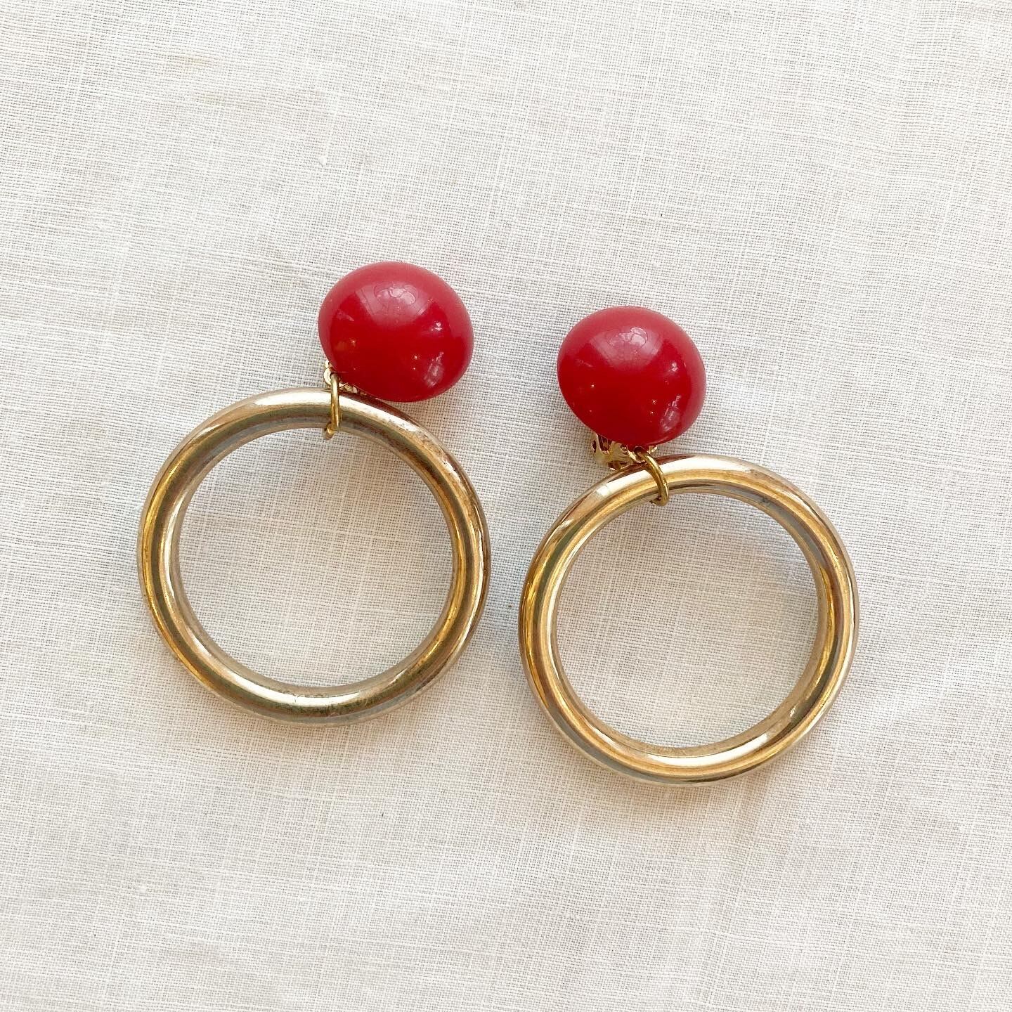 【フランス直輸入】赤×ゴールド 大ぶりでインパクトのある存在感が魅力 ヴィンテージイヤリング