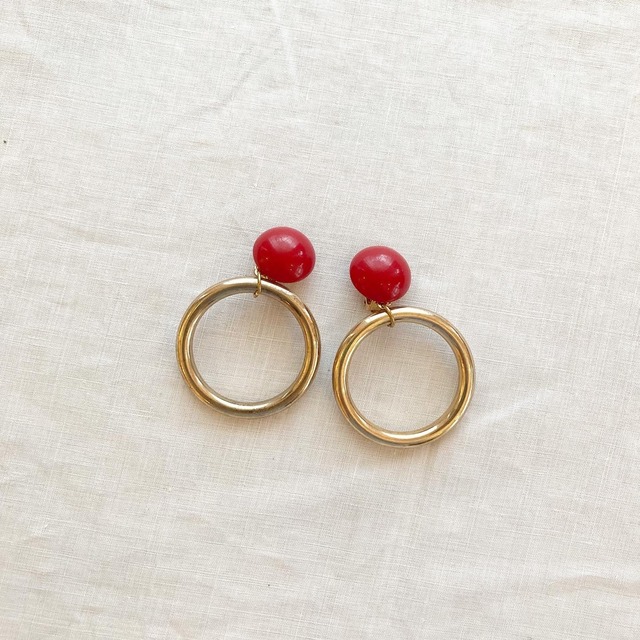 赤×ゴールドのヴィンテージイヤリング。