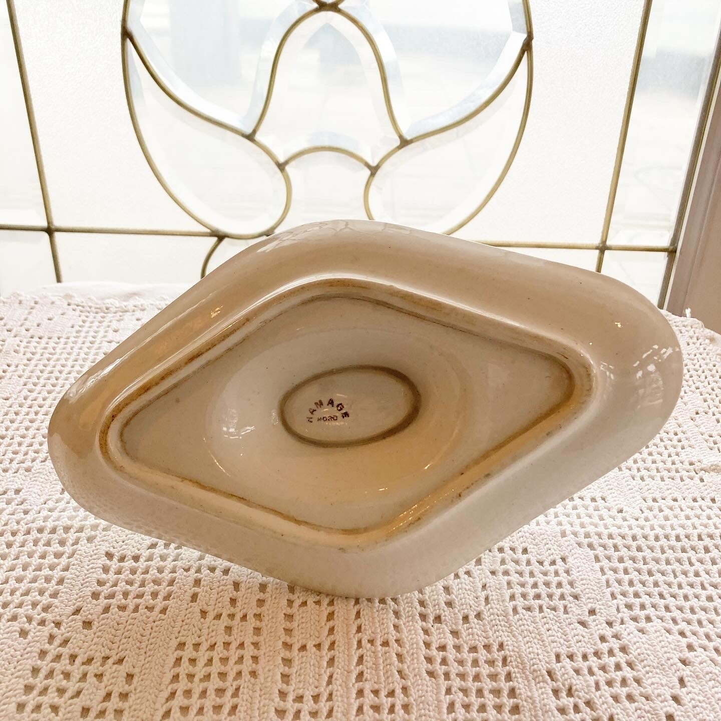 受け皿と一体型となっているタイプです。特筆するような大きなキズや欠けはございませんが、全体的に良い感じにブロカント感のあるアイテムです。