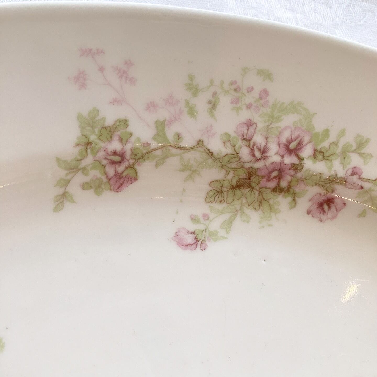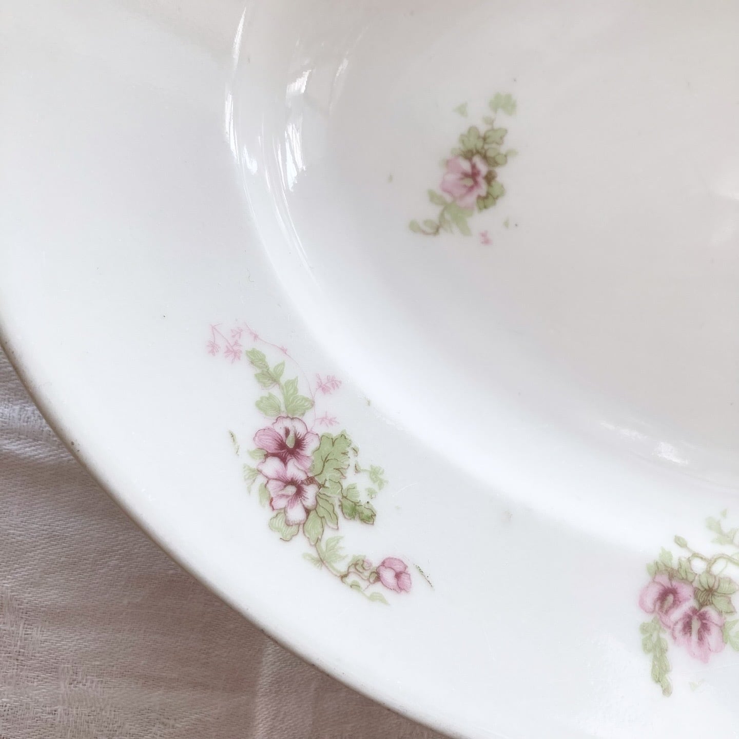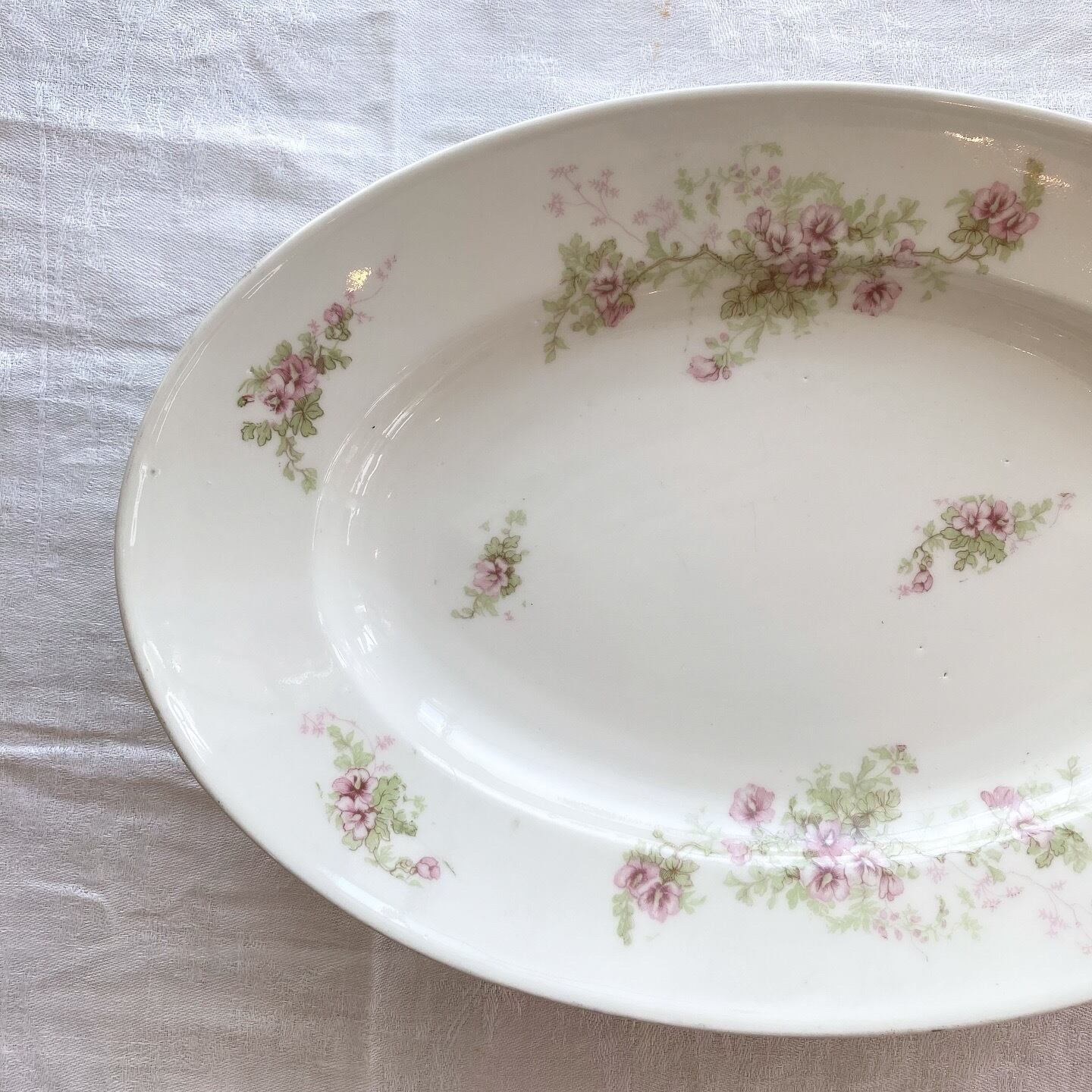 フランス直輸入の淡く繊細なパープルの花が咲き誇るアンティーク オーバル皿です。