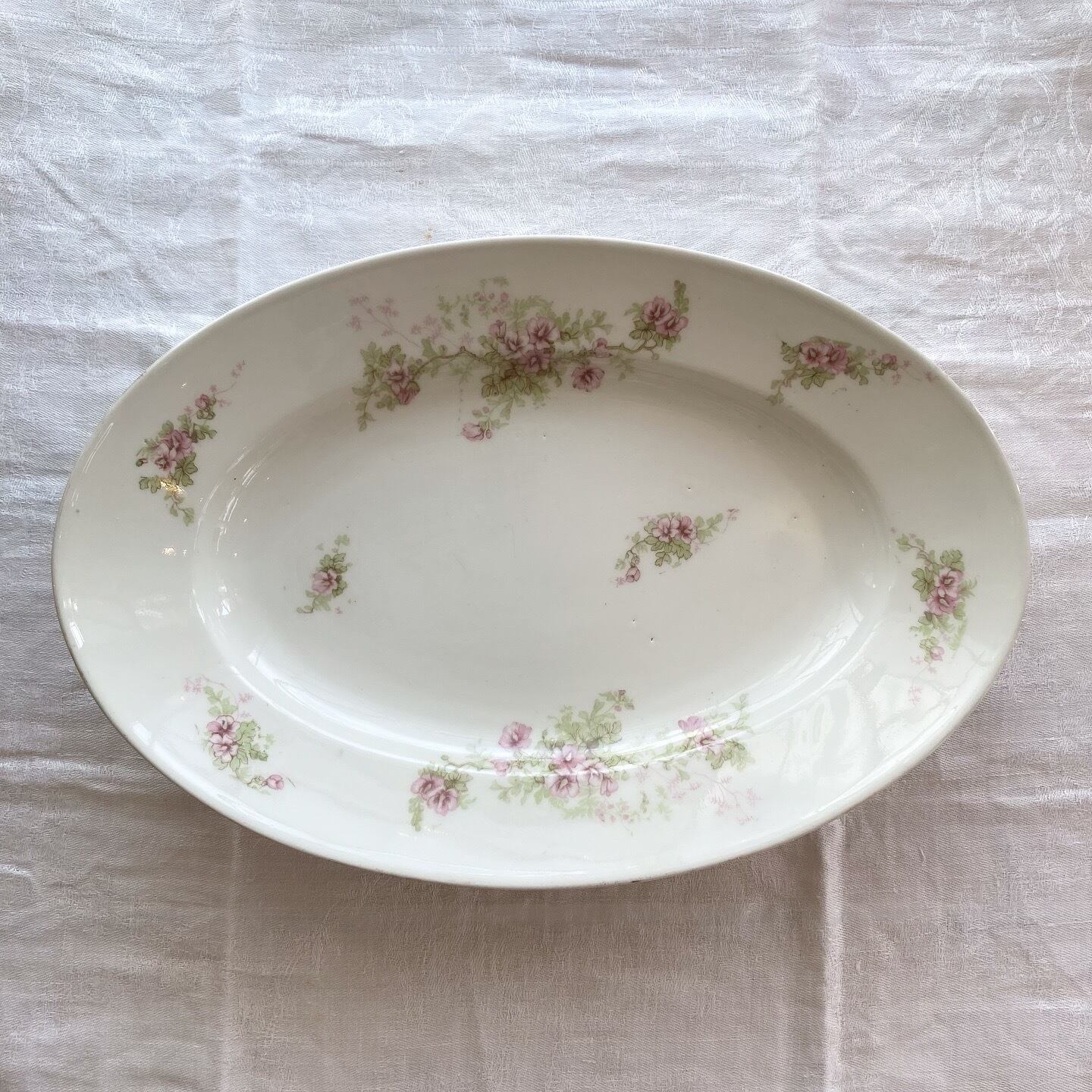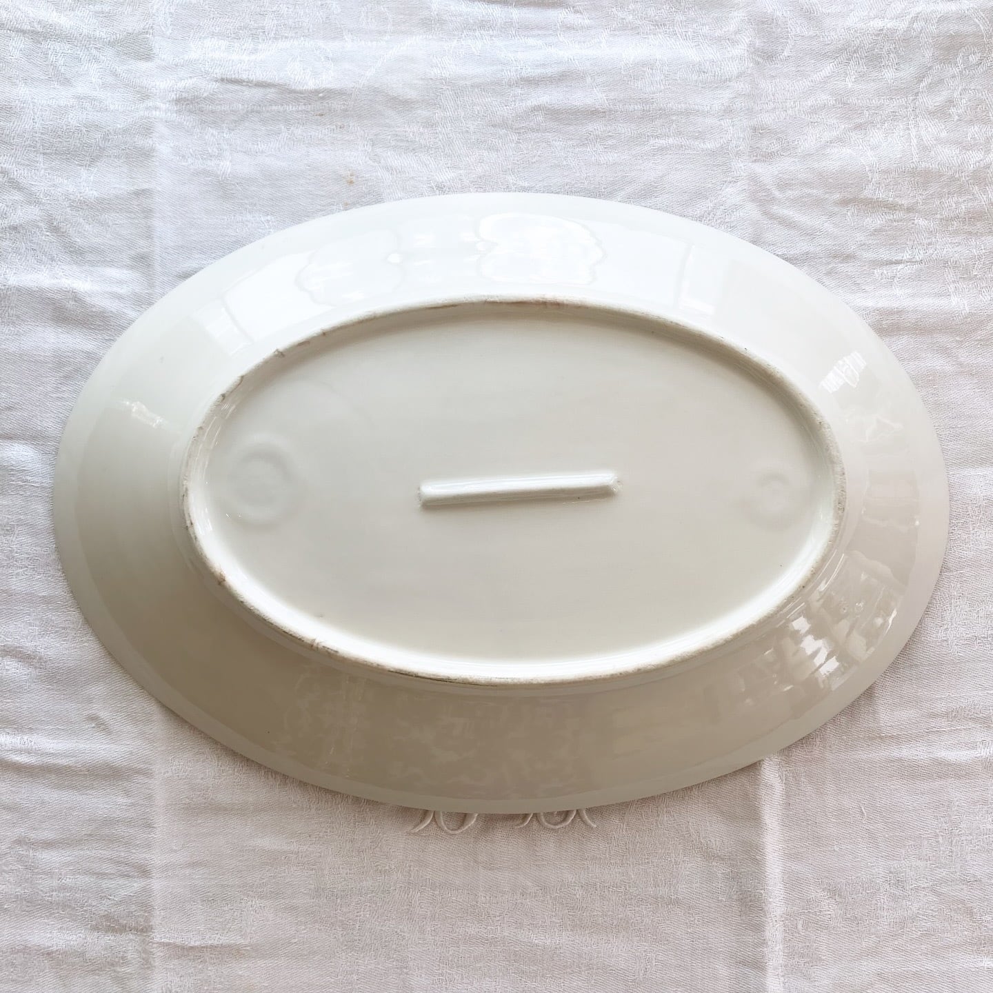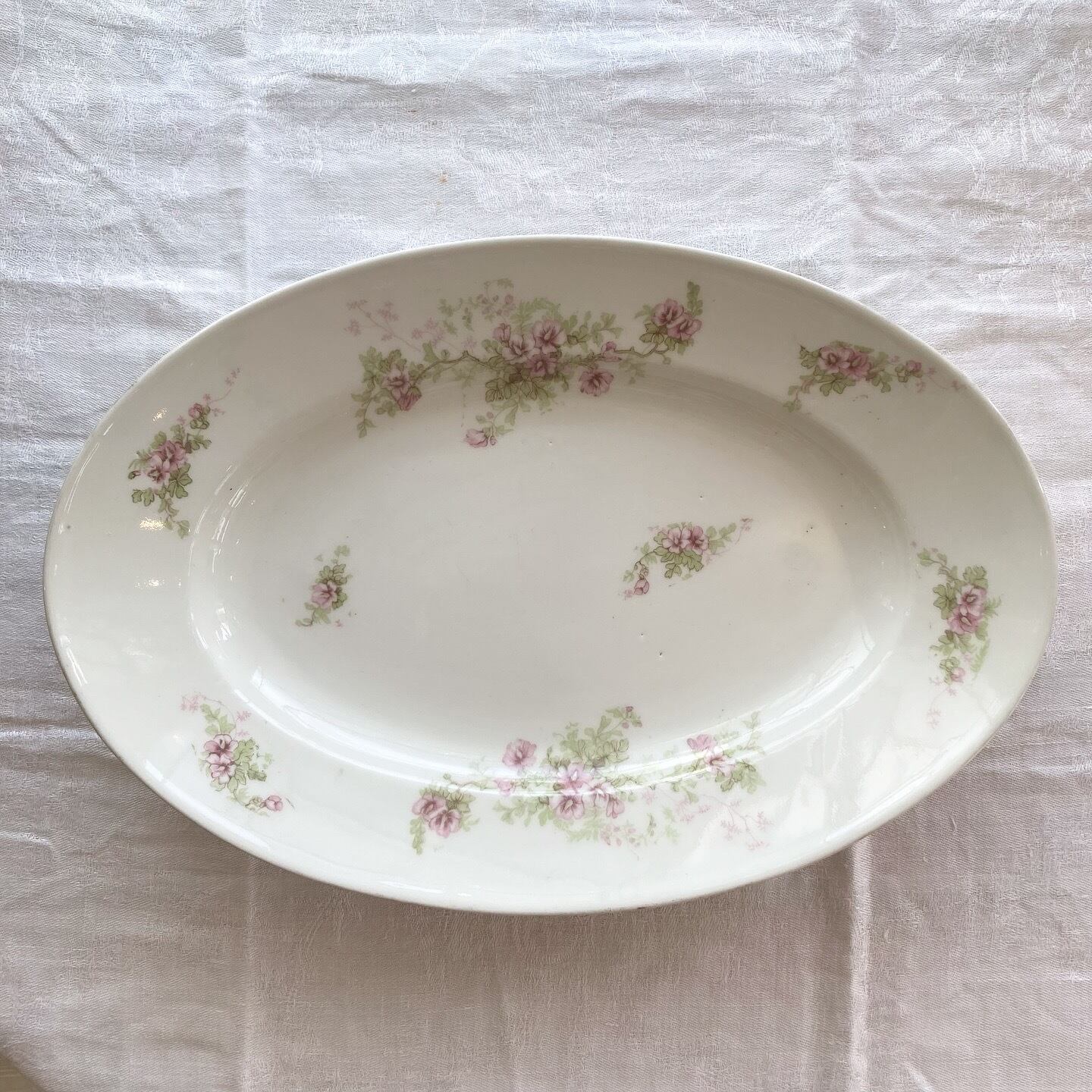 フランス直輸入の淡く繊細なパープルの花が咲き誇るアンティーク オーバル皿です。
