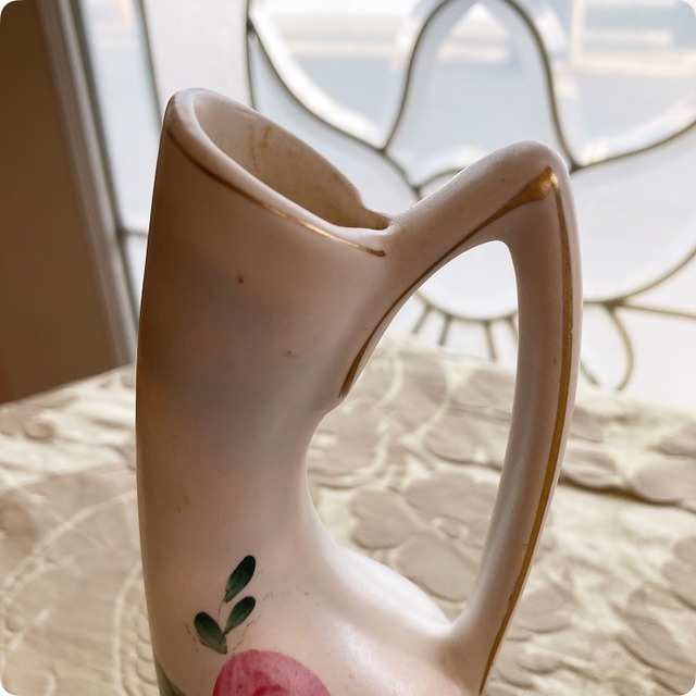 フランス直輸入の、可愛らしいピンクの花が描かれたフラワーベースです。