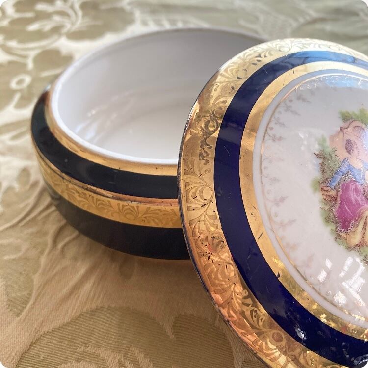 【フランス直輸入】コバルトブルーが印象的 アンティーク 小物入れ