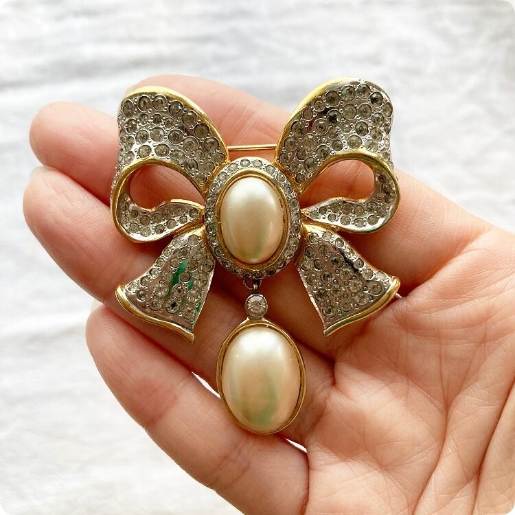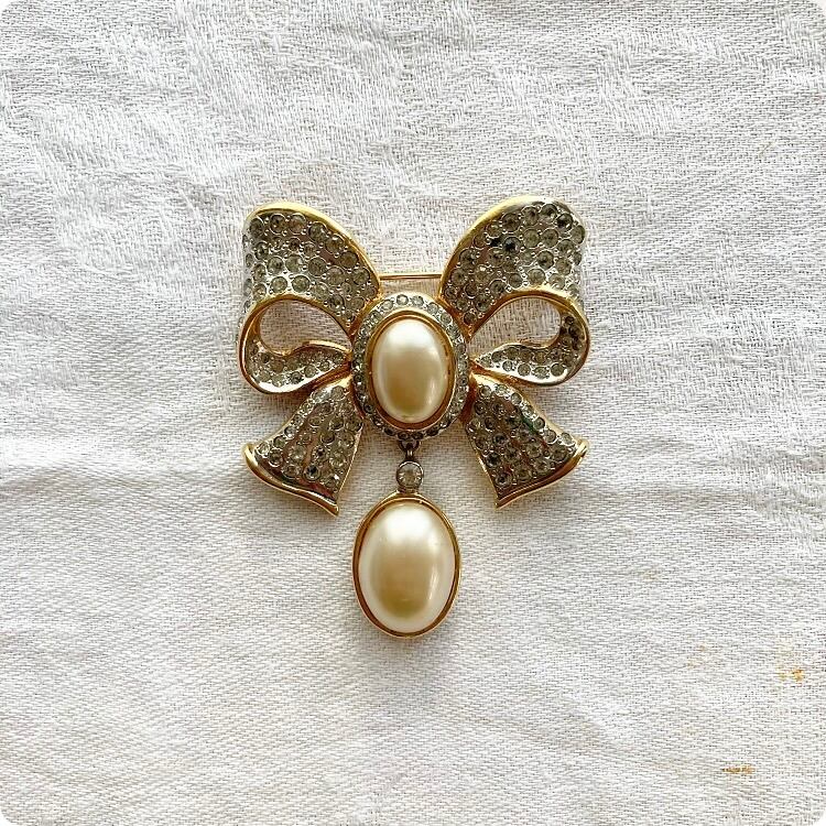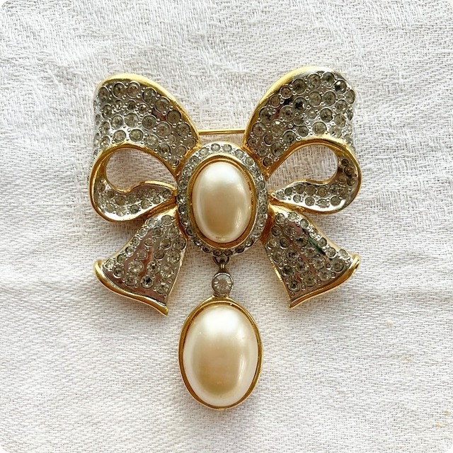 【フランス直輸入】存在感抜群な愛らしさリボンモチーフ パール ヴィンテージブローチ
