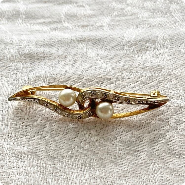 【フランス直輸入】エレガントで女性らしいパールデザインが魅力 ヴィンテージブローチ