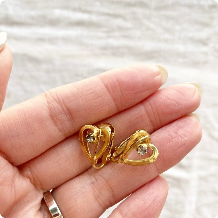 【フランス直輸入】ハートモチーフが愛らしくエレガントな雰囲気の ヴィンテージイヤリング