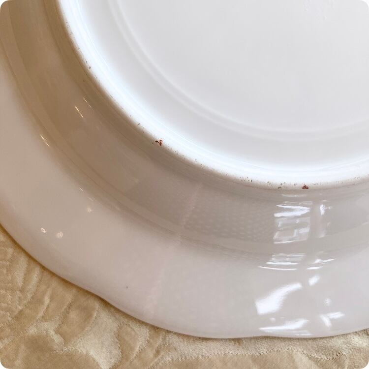 このアンティーク皿は、シンプルながらも存在感があり、デザートやお料理を盛り付けることで、その魅力が一層引き立ちます。