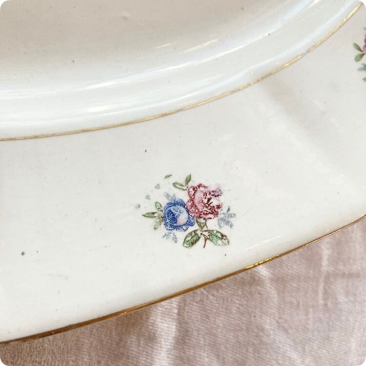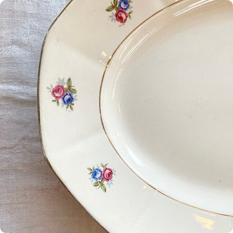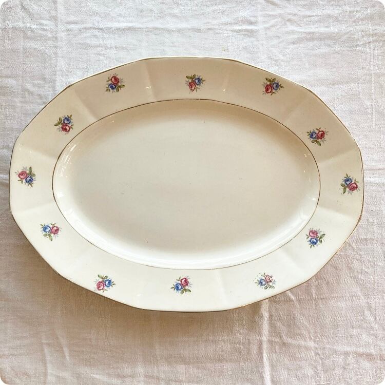 フランスから届いたばかりの、ブルーとピンクの愛らしい色合いの小花が印象的なDIGOINサルグミンヌの大皿です。