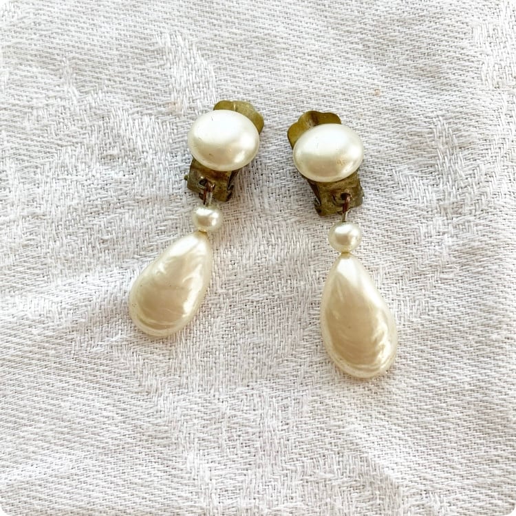 フランスから届いたばかりの、清楚で品の良い装いを演出するバロックパールのヴィンテージイヤリングです。