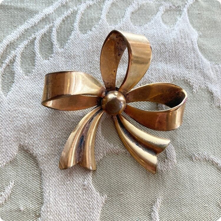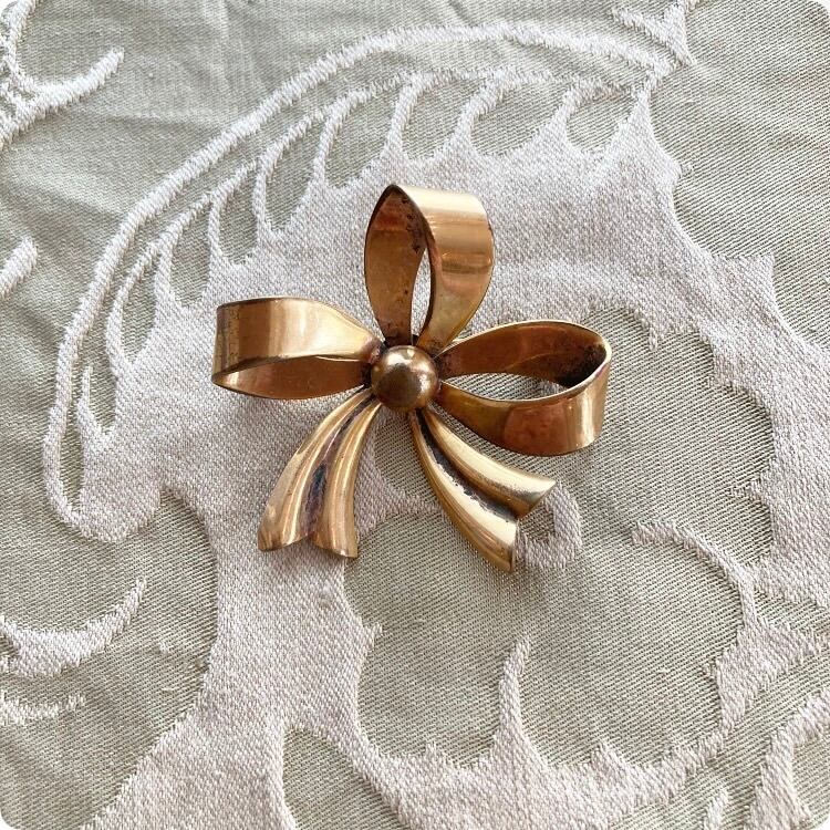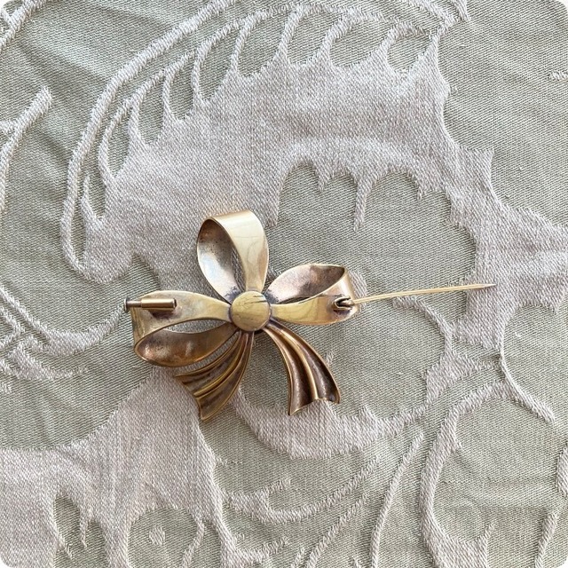 [フランス直輸入] ヴィンテージならではの風合いが魅力 リボンモチーフ ブローチ