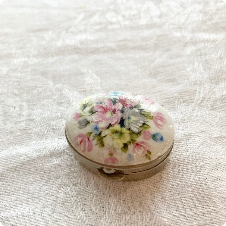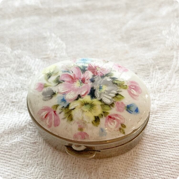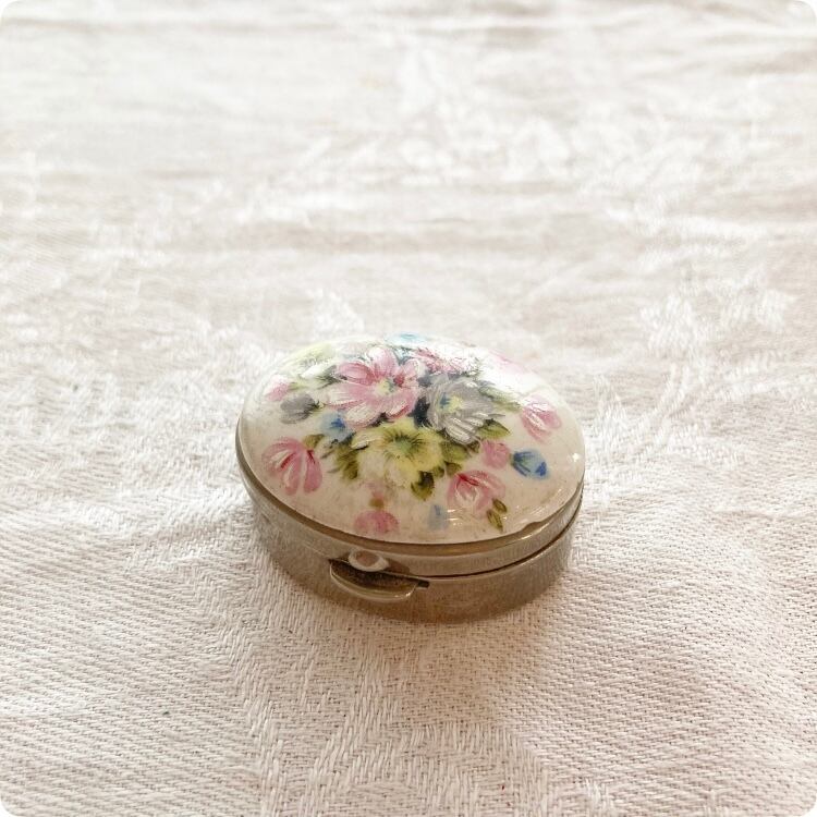 【フランス直輸入】パステルカラーの愛らしい花柄が素敵 アンティークピルケース