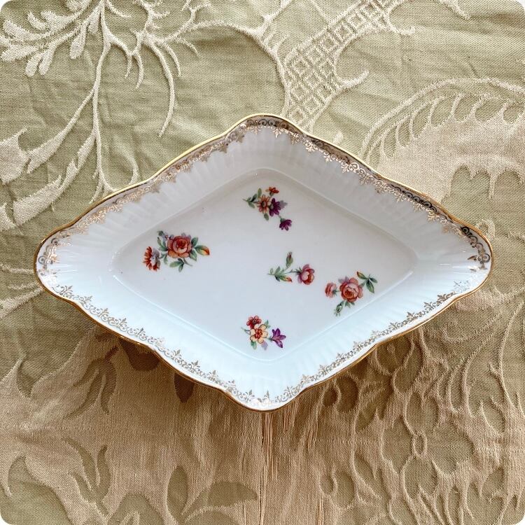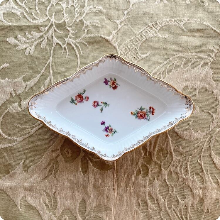 華やかなデザインと上品な金彩が魅力の『PORCELAINE 』ダイヤ型のラヴィエ皿が、フランスから届きました。