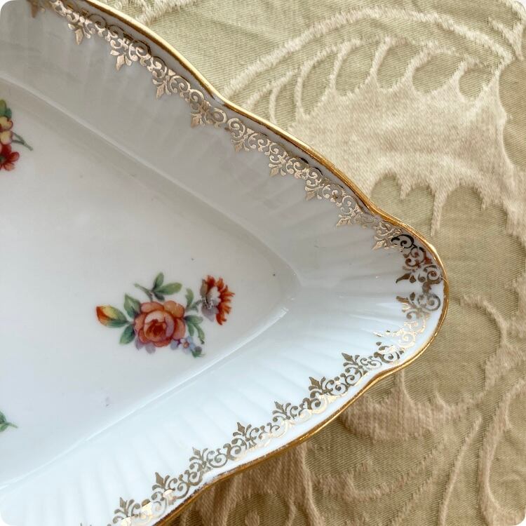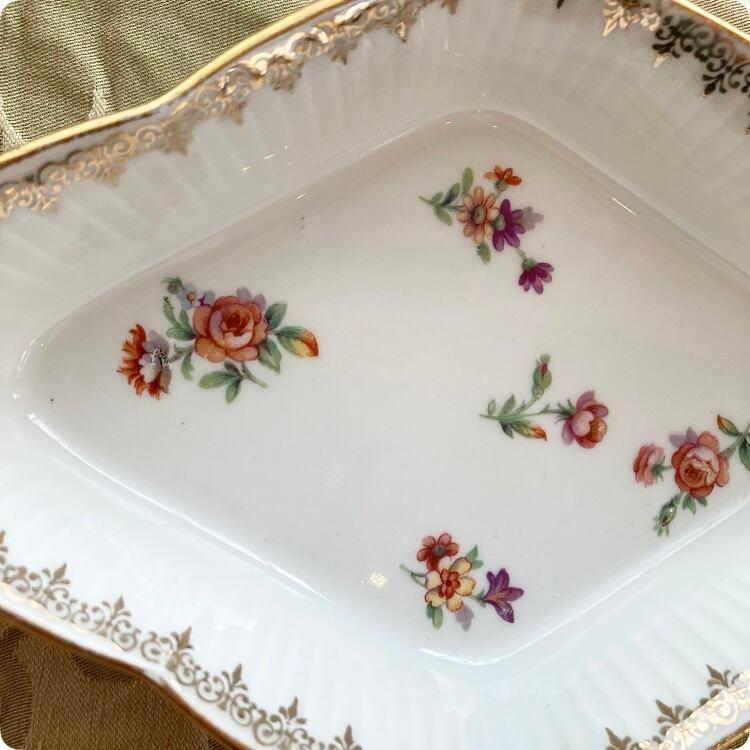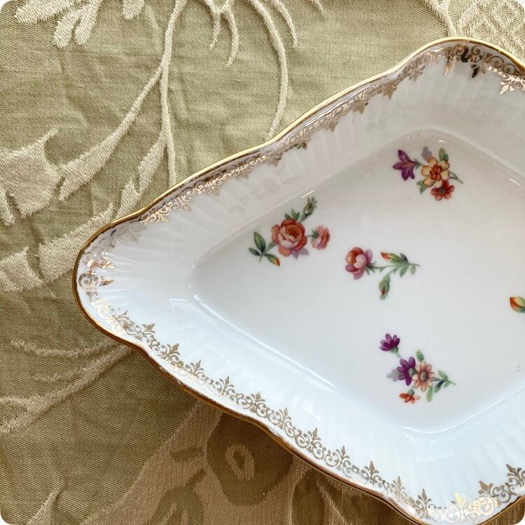 【フランス直輸入】愛らしい小花と華やかな金彩に心奪われる PORCELAINE ラヴィエ皿 ①