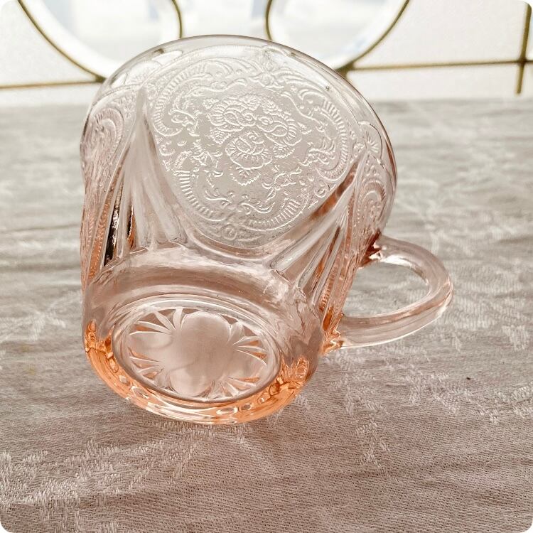愛らしいピンクカラーに心躍る ガラス製 カップ&ソーサー(トリオ)
