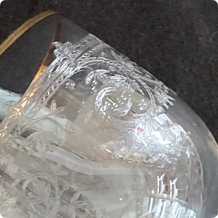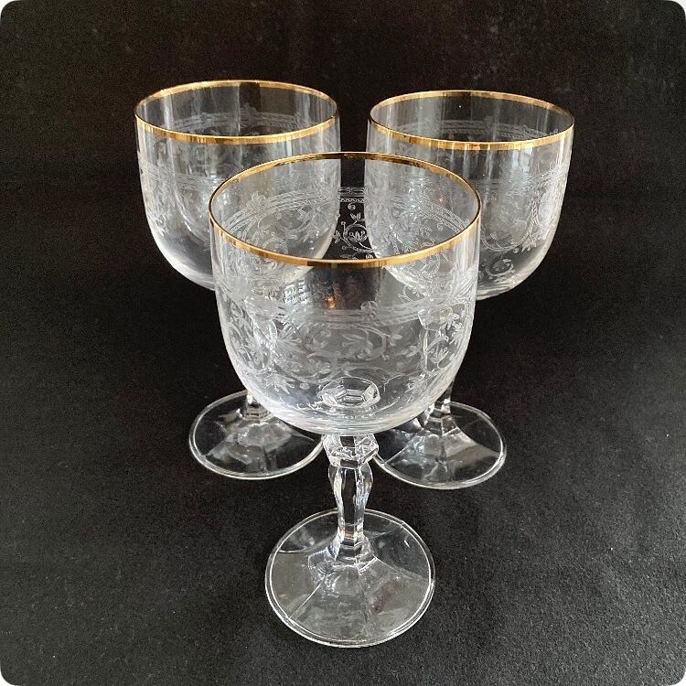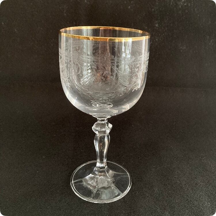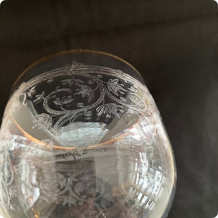 フランスから直輸入した繊細で優雅なエッジングが施されたワイングラスです。