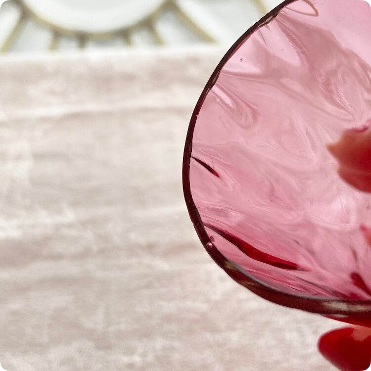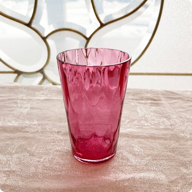 クランベリーガラスならではの深い色合いは、見る人を魅了し、インテリアとしても素敵なポイントになります。